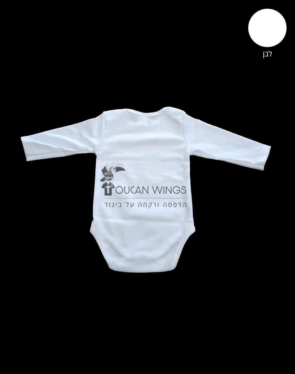 קצת על הבגד : בגד גוף איכותי לתינוקות בצבע לבן, עם תיקתקים למטה.